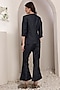 Featuring an indigo asymmetric blazer in denim base with crystal and thread hand embroidery. It is paired with pants. Accentuate it with stud earrings and mules for evening wear or office meetings.