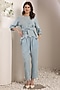 Featuring a sky blue top in chambray base with crystal and floral embroidery. It is paired with pants. Accentuate it with stud earrings, a sling bag and mules for evening wear or casual outings.