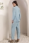 Featuring a sky blue blazer in denim base with pearl hand embroidery. It is paired with pants. Accentuate it with stud earrings and mules for evening wear or office meetings.