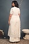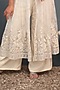 Featuring a white jacket in net, tulle, and crepe base with dori and thread embroidery. It is paired with matching palazzo pants.