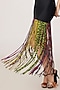 Saaksha & Kinni features a black maxi dress crafted in lycra and chiffon base with a fitted bodice, abstract print and skirt tassels detailing. Style it with a head scarf, statement earrings and metallic high heels for a complete look. Perfect for a beach party, vacation or roof-top lunches.