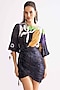 Black & Multi-Colored Habutai Tribal Printed Mini Overlap Dress