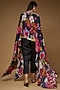 Featuring a black batwing cape in pure silk base with floral print and high neck. Accessorise with dangler earrings and flats.