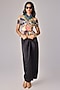 Saaksha & Kinni presents a multi-colored bow-style blouse in cambric base with drop shoulder, pleats, frills and abstract patchwork print. It is paired with a black satin asymmetric wrap maxi skirt. Style with dangler earrings, a clutch and heels for a complete look.