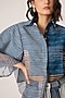 Saaksha & Kinni features blue and grey high-waist shorts crafted in denim base with side pockets and patchwork print. It is paired with a silk organza batwing shirt having stripe print. Style it with statement jewellery and heels for a bold and contemporary look, perfect for cocktail parties, fashion events or evening outings.