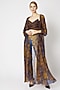 Featuring a cobalt blue hand micro pleated cape in chiffon and organza base with abstract digital print and embroidery. It has smocking on the shoulders. This contains only one piece.