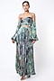 Featuring a cobalt blue micro-pleated bustier in chiffon base with ikat print and exaggerated sleeves. This contains only one piece.