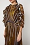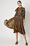 Featuring a gold kalidar dress in chiffon base with abstract digital print, adjustable waist, and contrast piping. It is paired with a matching inner.