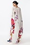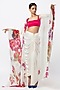 Featuring an ivory cape in chiffon base with abstract floral placement print. It is paired with a contrasting hot pink silk square cut bustier and a matching silk asymmetric draped skirt having zipper detailing.