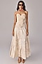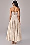 Saaksha & Kinni presents an ivory oversized trench coat in crepe base with floral abstract print. It is paired with a quilted corset and a high-waist maxi skirt. Style with hoop earrings, a woven bag, and strappy sandals for a breezy summer vibe.