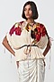 Featuring an ivory hand micro pleated blouse in cotton silk base with abstract floral print and adjustable drawstring. It is paired with a matching silk draped asymmetric skirt having zipper detailing.
