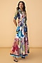 Featuring a multi-colored maxi shirt dress in cambric base with 3/4th sleeves and abstract print. Style with layered jewelry and neutral heels to balance the prints, Ideal for festive lunches or semi-formal gatherings.