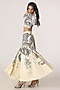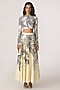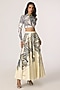 Saaksha & Kinni features a multi-colored high-waist skirt crafted in cambric base with abstract doodle print. It is paired a lycra t-shirt style blouse having a boat neckline. Style it with statement jewellery and heels for a bold and contemporary look, perfect for cocktail parties, fashion events or evening outings.