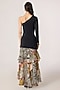Saaksha & Kinni features a multi-colored one-shoulder maxi dress crafted in chiffon and lycra base with long sleeves, fitted bodice, abstract floral print and an asymmetric tiered skirt. Style it with statement jewellery and heels for a bold and contemporary look, perfect for cocktail parties, fashion events or evening outings.