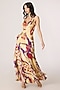 Saaksha & Kinni features a multi-colored maxi dress crafted in satin twill and chiffon base with an asymmetrical sleeves, ruffled skirt, fitted bodice and abstract tribal print. Style it with statement jewellery and heels for a bold and contemporary look, perfect for cocktail parties, fashion events or evening outings.