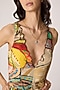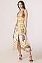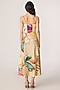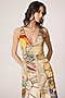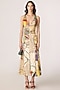 Saaksha & Kinni features a multi-colored A-line maxi dress crafted in cotton lycra base with a plunging neckline, center slit and abstract floral print. Style it with a head scarf, statement earrings and metallic high heels for a complete look. Perfect for a beach party, vacation or roof-top lunches.