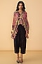 Featuring a multi-colored kaftan-style blouse in cotton silk base with flared sleeves, stitch detailing and abstract floral print. It is paired with black drill balloon trousers having pockets. Style with layered jewelry and neutral heels to balance the prints. Ideal for festive lunches or semi-formal gatherings.