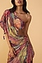 Featuring a multi-colored one-shoulder dress in cotton silk and lycra base with hand micro pleats, tie-up sleeves and abstract floral print Style with layered jewelry and neutral heels to balance the prints, Ideal for festive lunches or semi-formal gatherings.