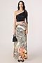 Saaksha & Kinni features a multi-colored one-shoulder maxi dress crafted in crepe base with tie-up detail, abstract doodle and floral print. Style it with a head scarf, statement earrings and metallic high heels for a complete look. Perfect for a beach party, vacation or roof-top lunches.