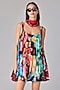 Saaksha & Kinni presents a multi-colored flared mini dress in crepe base with a scoop neckline and floral print. Style with hoop earrings, a woven bag and strappy sandals for a breezy summer vibe.