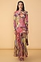 Featuring a multi-colored maxi dress in lycra and chiffon base with a closed neck, long sleeves and abstract floral print. Style with layered jewelry and neutral heels to balance the prints. Ideal for festive lunches or semi-formal gatherings.