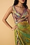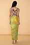 Featuring a multi-colored maxi dress in poly florence chiffon base with side drawstrings, abstract floral print, mirror and tassels hand embroidery. Style with layered jewelry and neutral heels to balance the prints. Ideal for festive lunches or semi-formal gatherings.