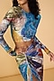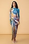 Featuring a multi-colored blouse in lycra base with a boat-neckline, long sleeves and abstract scribble print. It is paired with a poly florence chiffon printed asymmetric maxi skirt. Style with layered jewelry and neutral heels to balance the prints, Ideal for festive lunches or semi-formal gatherings.