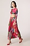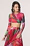 Saaksha & Kinni features a multi-colored high-waist midi skirt crafted in poly florence chiffon and stretch jersey base with micro pleats and abstract floral print. It is paired with a t-shirt style blouse having a boat neckline. Style it with statement jewellery and heels for a bold and contemporary look, perfect for cocktail parties, fashion events or evening outings.