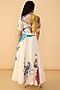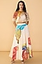 Featuring a multi-colored boxy-style shirt in organza base with 3/4th sleeves and abstract scribble print. It is paired with a slip and poplin printed flared maxi skirt. Style with layered jewelry and neutral heels to balance the prints. Ideal for casual or beach wear.