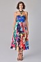 Multi-Colored Poplin Floral Printed Strapless Midi Dress