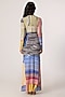 Saaksha & Kinni features a multi-colored fitted maxi dress crafted in stretch lycra base with long sleeves and an abstract stripe print. Style it with a head scarf, statement earrings and metallic high heels for a complete look. Perfect for a beach party, vacation or roof-top lunches.