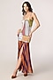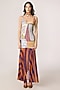 Saaksha & Kinni features a multi-colored fitted maxi dress crafted in stretch lycra and chiffon base with a square neckline, fitted bodice, adjustable center slit detail and abstract stripe print. Style it with a head scarf, statement earrings and metallic high heels for a complete look. Perfect for a beach party, vacation or roof-top lunches.