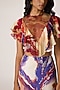 Saaksha & Kinni features a multi-colored blouse crafted in silk organza, chiffon and jersey stretch base with a high-neckline, abstract tribal print and frills detailing. It is paired with a stretch jersey, habutai, satin twill and chiffon skirt. Ideal for a daytime event or a casual brunch, Pair it with simple, flat sandals or espadrilles and a straw tote bag for a relaxed chic look.