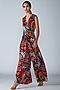 Featuring a multi-coloured jumpsuit in satin base with abstract bird print and an attached belt.