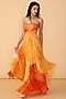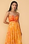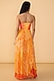 Orange Chiffon Abstract Floral Printed Strapless Maxi Dress