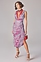 Saaksha & Kinni presents a purple micro-pleated dress in chiffon and cotton silk base with a cowl-neckline, drawstrings detail, bandhani and floral print. It is paired with a bralette. Style with hoop earrings, a woven bag and strappy sandals for a breezy summer vibe.