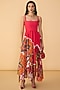Raspberry Red Cambric Abstract Printed Midi Dress
