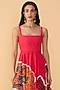Featuring a raspberry red midi dress in cambric base with a square neckline, cutwork applique embroidery and abstract print. Style with layered jewelry and neutral heels to balance the prints. Ideal for brunch or vacation wear.