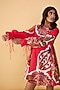 Featuring a raspberry red shift dress in cambric base with tie-up sleeves and abstract print. Style with layered jewelry and neutral heels to balance the prints, Ideal for festive lunches or semi-formal gatherings.