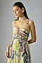 Featuring a yellow hand micro pleated maxi dress in chiffon base with floral print and a sweetheart neckline. Style it with minimal jewellery and heels for evening gatherings, looking effortlessly chic and modern.