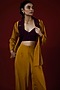 Featuring a mustard yellow blazer in crepe base with stripes detailing. It is paired with palazzo pants and bustier.Accentuate it with stud earrings and heels for a office wear or formal events.