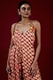 Featuring a yellow and pink jumpsuit in georgette base with geometric print and tie-up belt. Accentuate it with stud earrings and heels for a brunch date or sundowner.