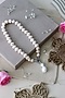 Featuring a champagne necklace studded with pearls.