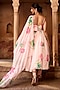 Featuring a baby pink anarkali in organza, poly crepe and jersey base with floral print, sweetheart neckline, noodle straps. It is paired with pants and a dupatta. Accentuate it with statement earrings and heels for a festive occasion or wedding ceremony.