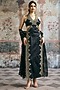 Featuring a black halter-style kurta in raw silk base with a side cut-out, plunging V-neck, crisscross open back and hand embroidery. It is paired with pants and a sheer dupatta. Style this kurta set with statement earrings and embroidered juttis for a graceful look. Ideal for festive celebrations, mehendi, family gatherings, or traditional functions.