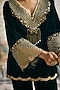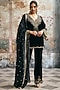 Featuring a black kurta in velvet base with flared sleeves, deep V-neckline, sequins and beads hand embroidery. It is paired with straight-cut pants and a sheer dupatta having rhinestone embellishments. Style this kurta set with statement earrings and embroidered juttis for a graceful look. Ideal for festive celebrations, mehendi, family gatherings, or traditional functions.