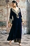 Featuring a blue kaftan in velvet base with flared sleeves, plunging V-neckline, thread, sequins and beads embellishments. It is paired with tapered pants. Style this kurta set with statement earrings and embroidered juttis for a graceful look. Ideal for festive celebrations, mehendi, family gatherings, or traditional functions.
