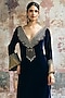 Blue Velvet Sequins & Beads Embellished Kaftan Set