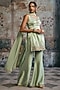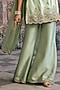 Featuring a green kurta in tissue mukesh and zora silk base with hand embroidery. It is paired with wide-legged sharara pants and a chiffon dupatta. Accentuate with statement jewellery and heels for a wedding or sangeet ceremony.