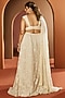 Featuring an ivory lehenga in georgette base with floral hand embroidery and thigh-high slit detail. It is paired with a crop top blouse having a square neckline and a dupatta. Accentuate it with statement jewellery and heels for cocktail parties.